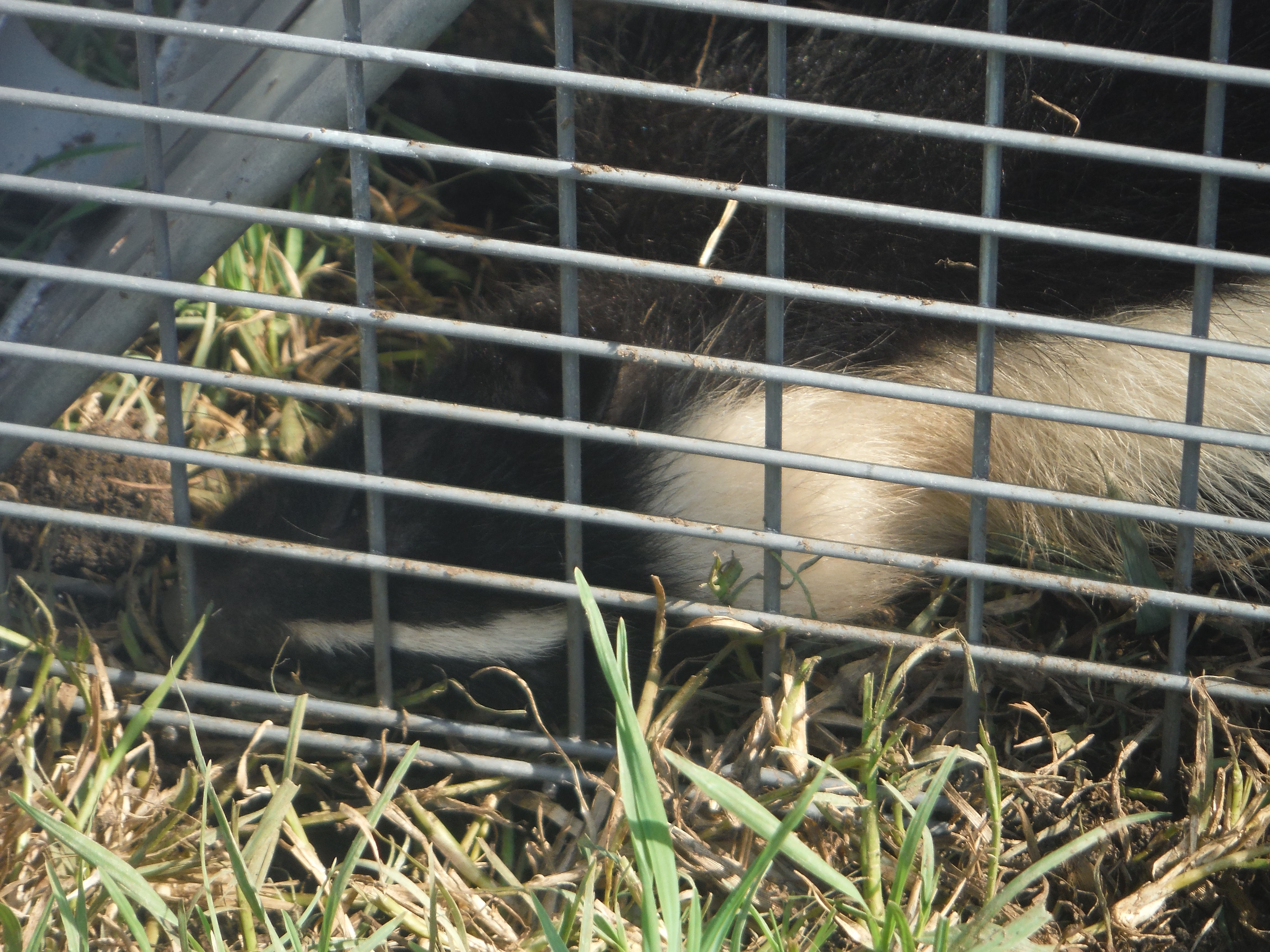 So I put my tranquilizer needle through the cage and the skunk uses the only defense mechanism it has.