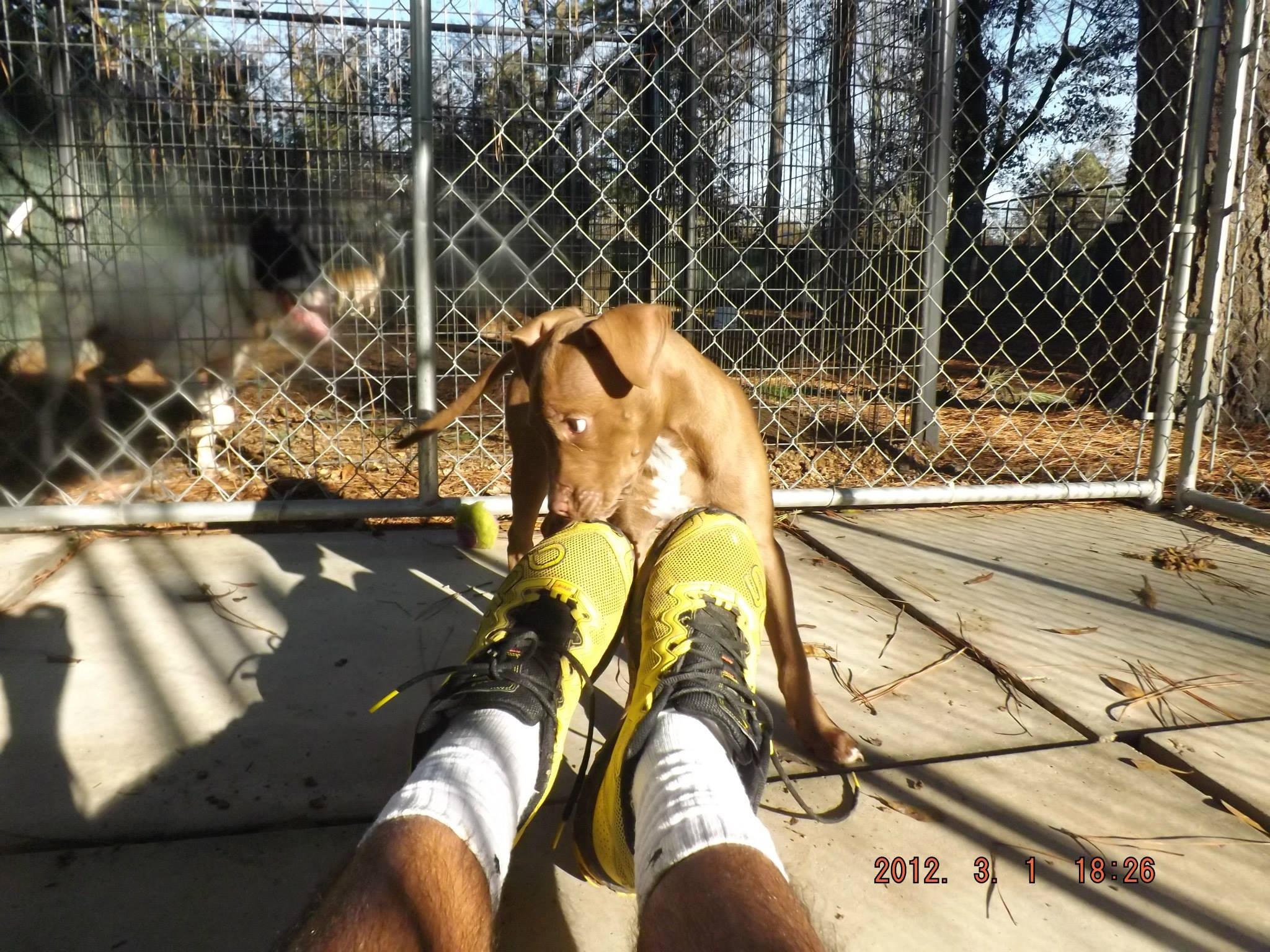 Thirty years later, here I am; prostrate in the grass of a Clear Lake, Texas home- waiting for the dog to show me her spirit. How do I capture her spirit , Grandpapa? The ten month old tan and white pit-bull lies on her back, limbs akimbo; silly as a tart, goofy as a ball of yarn. Her mud brown iris that encompasses her black pupil enlarges as she locks her gaze through the camera lens into my eyes.